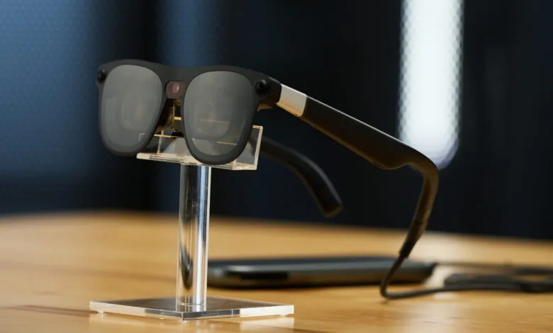 – The Project Aura glasses have a design similar to Meta’s Ray-Ban smart glasses, featuring chunky black plastic frames.
